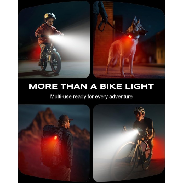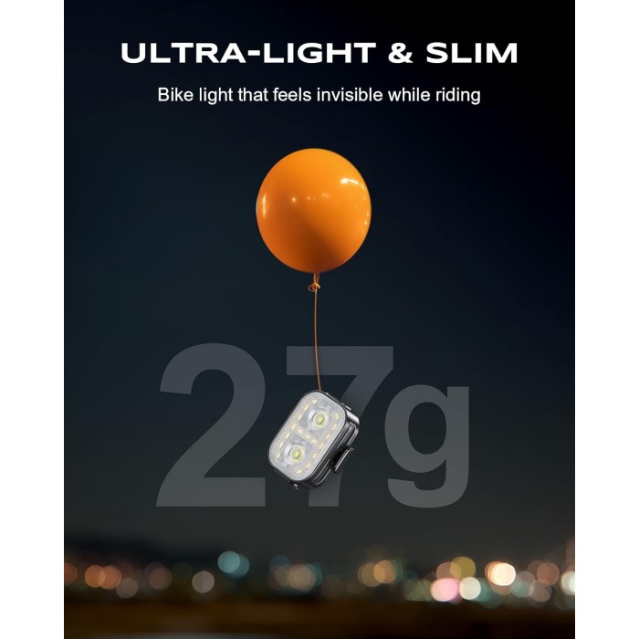 - Ultra Slim & Lightweight Design: The bike headlight weighs only 27g and the bike tail light 24g, with a thickness of just 17mm. This ultra-slim design fits easily into any pocket while delivering powerful illumination. Comes with 4 silicone straps for seamless integration with your bike handlebar, significantly reducing riding burden